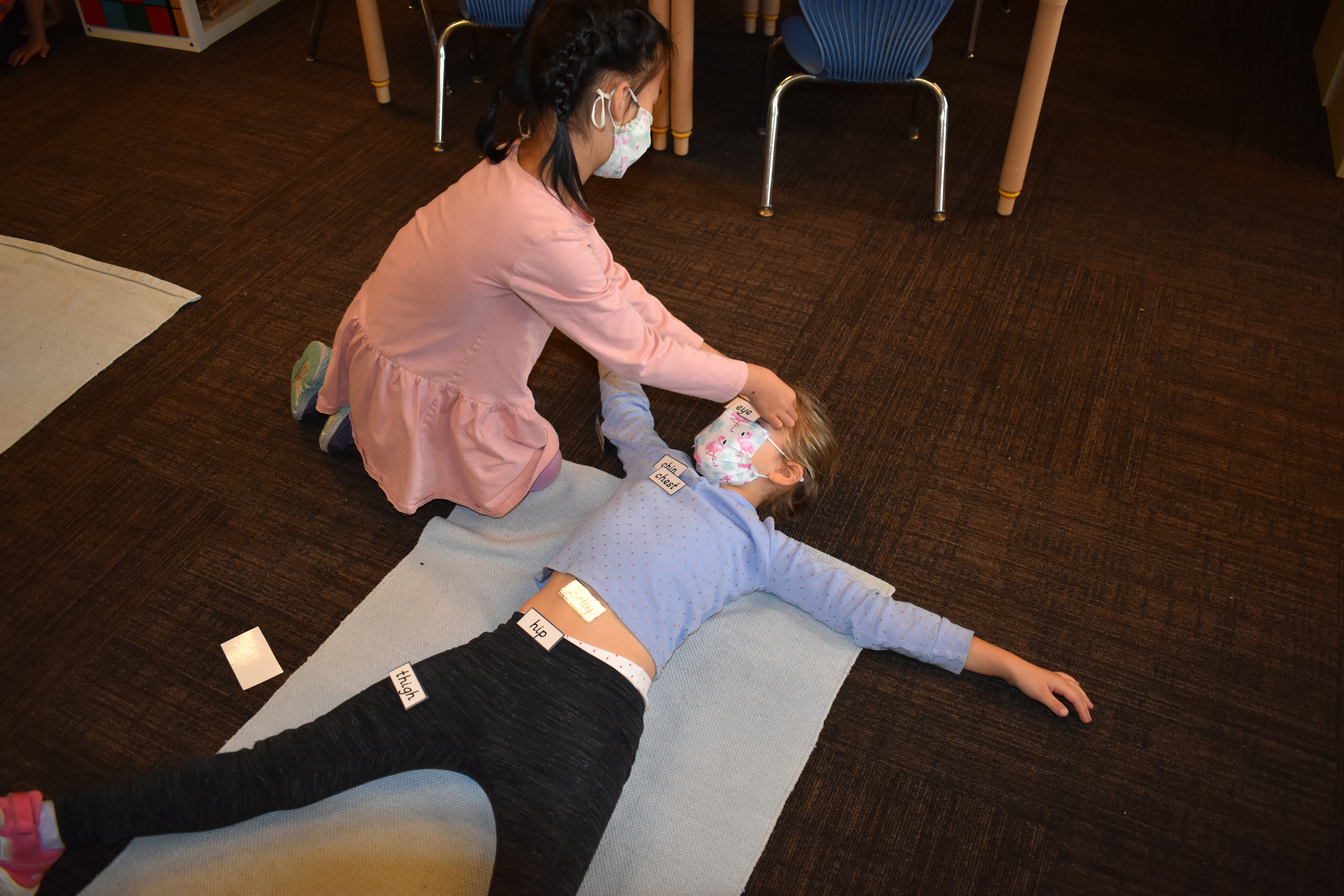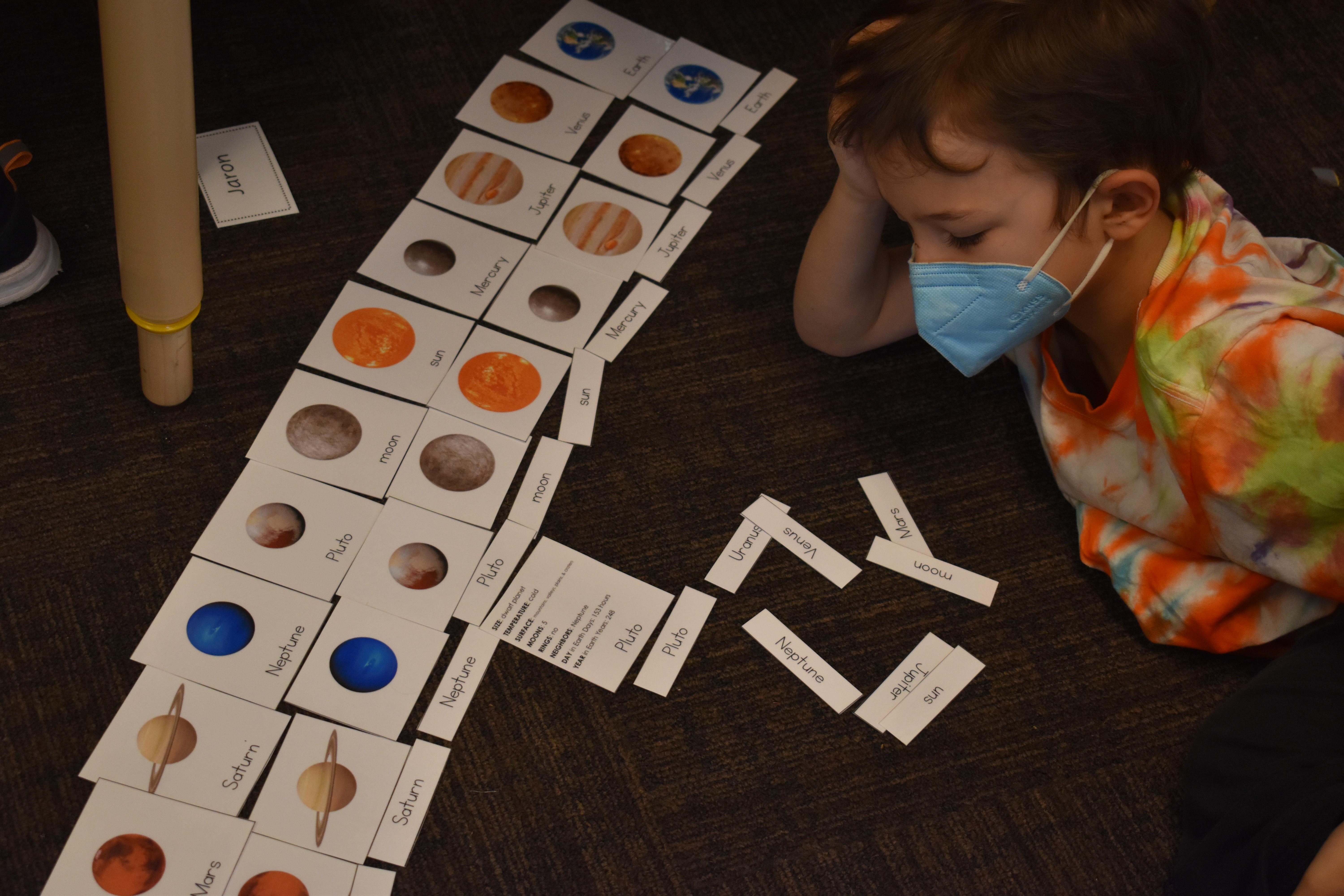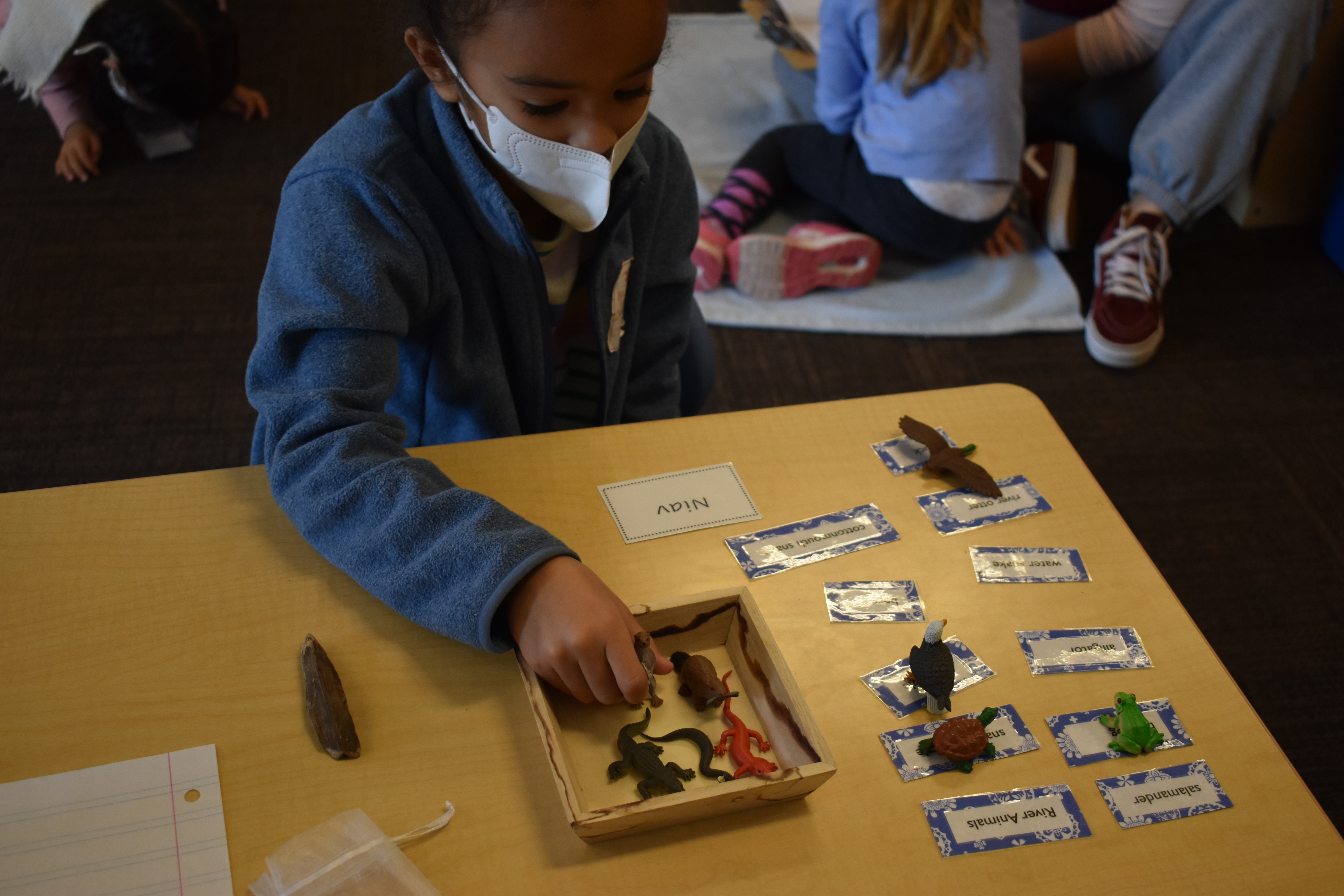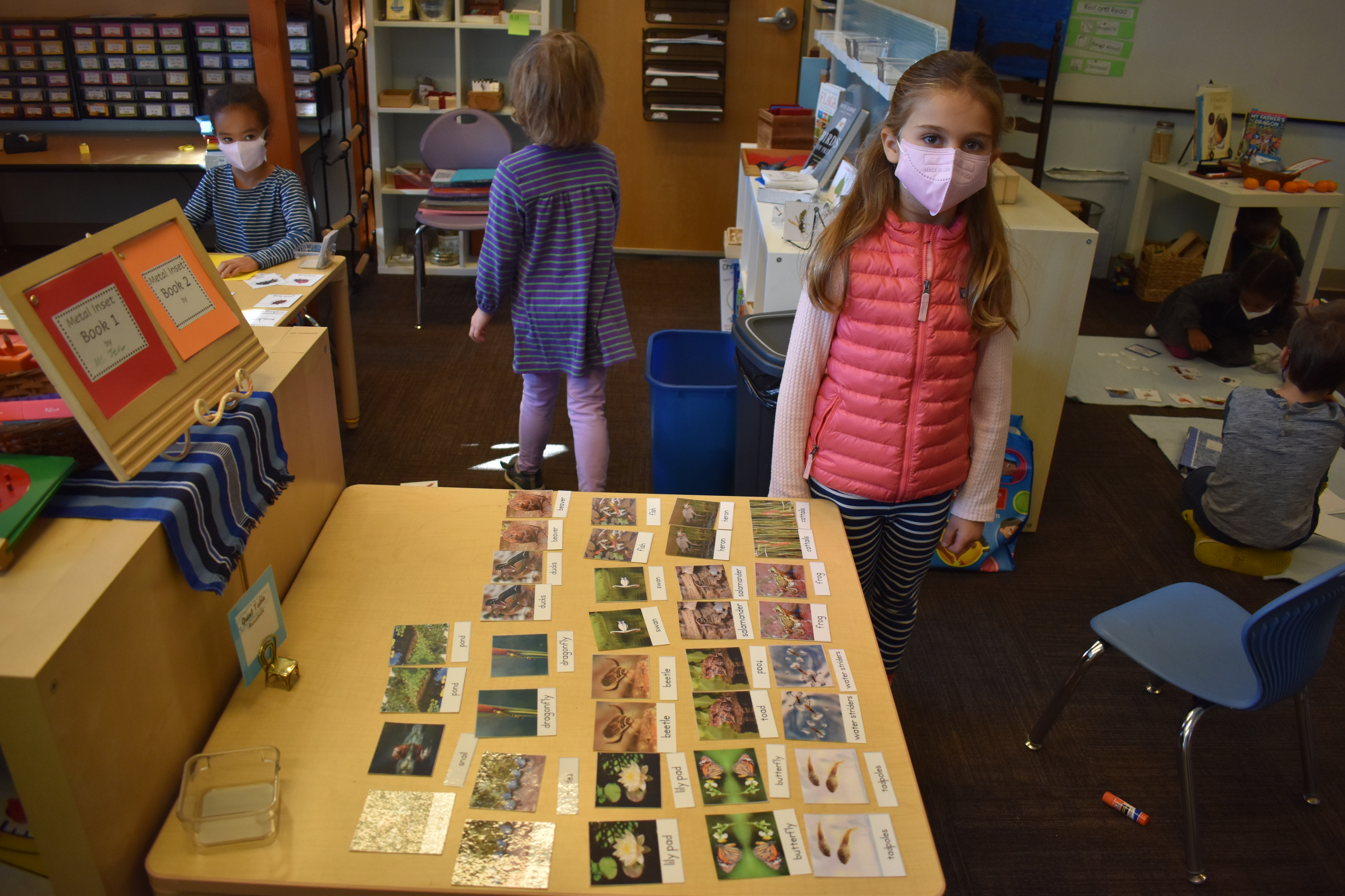 The students in LE are taking full advantage of all the literacy options! In the photos above you can see students reading and doing all sorts of vocabulary cards including butterfly, bunny, solar system, woodland animals, deep sea creatures, leaf shapes, and the students had a great time with “label the body” cards. The class made lots of thoughtful and creative extensions such as drawing different kinds of bunnies, writing the names down from the cards, and identifying leaf shapes in our classroom. One way to help our literacy program at school is to read aloud to your child each and every night, and tell stories at every chance you get!