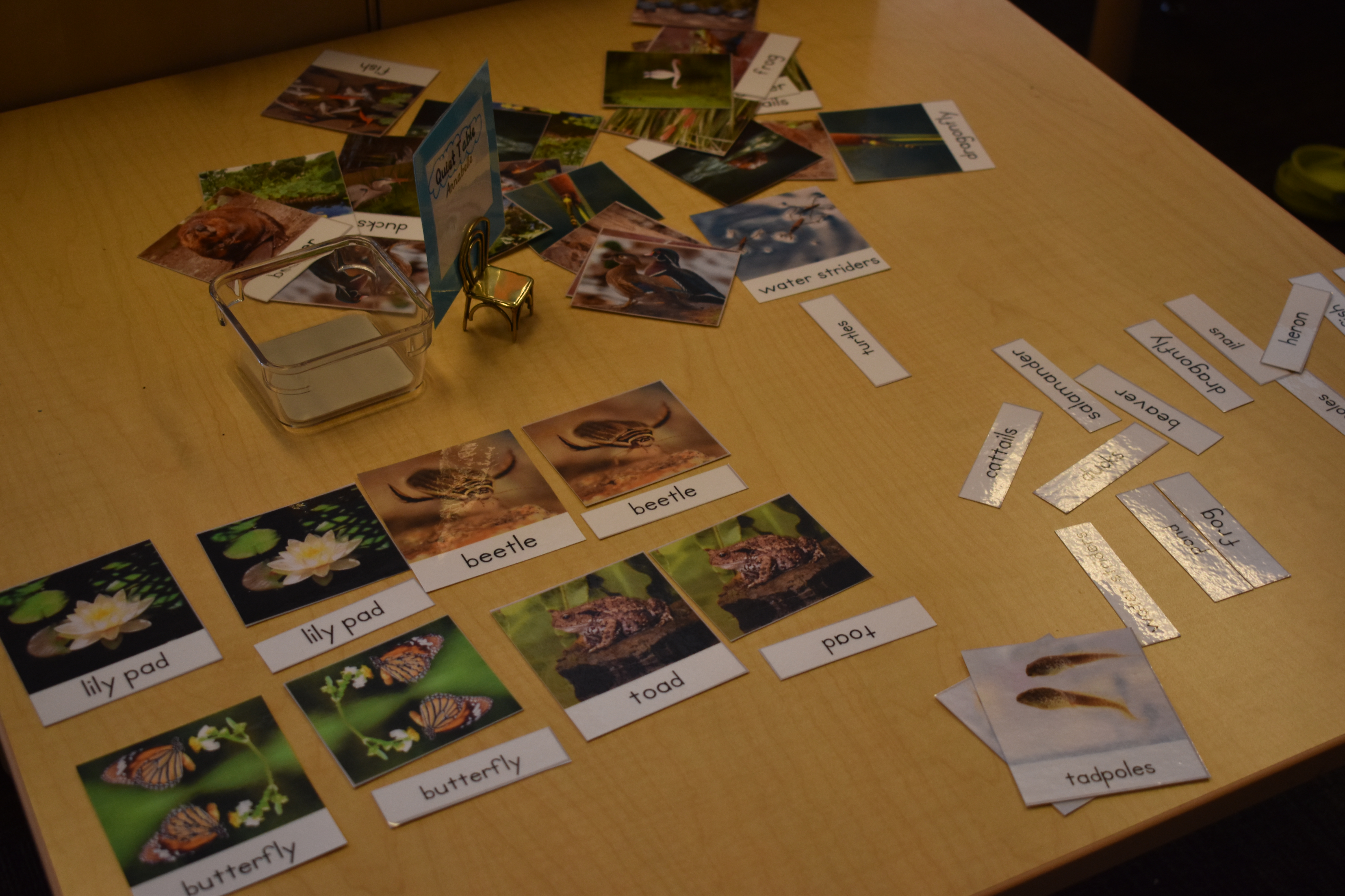 Vocabulary cards AND journal writing were taught for the first time, and the students showed a great deal of interest! We have a series of 3-part cards (1. picture & word cards 2. picture cards, and 3. word cards) in several interest areas… aircrafts, flowers, farm life, pond life, insects, and butterflies to name a few. The students need to be quite organized, finding strategies to arrange the cards in order, make matches, and read the names. Some of the card sets have 30+, which makes the job very challenging!!