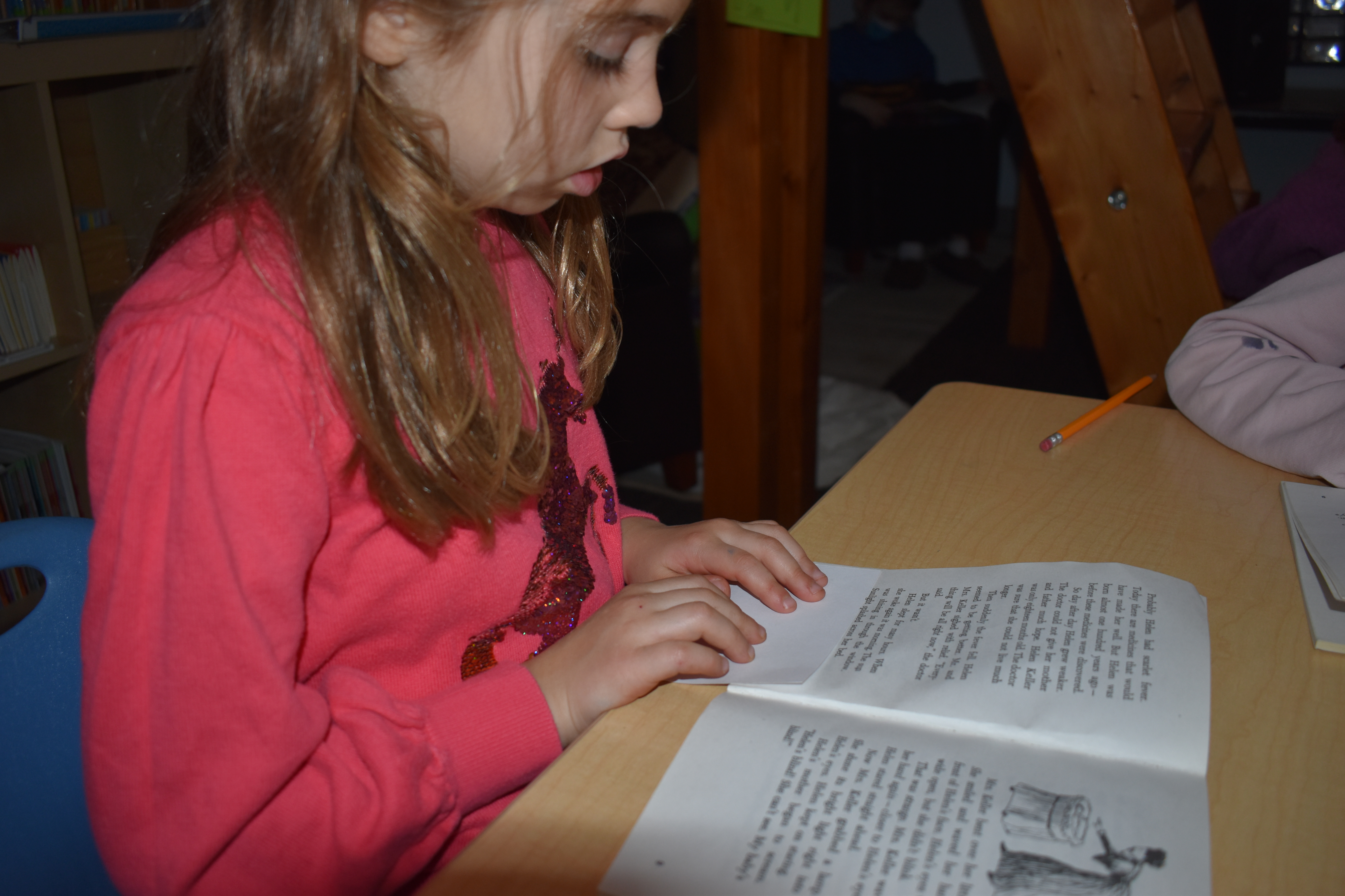 Small Book Clubs Reading about Helen KellerColor mixing with Ms. CamillaVocabulary work in cursiveMovement with Ms. KeiPreviewing the chapterUsing water to blendThinking about the color wheelConcentrationBlending colorsPracticing cursiveFeeling fine!Magnatile mazesMagnatile shipsHiding marbles in a shipKing of the blocktowerPlease take a picture Look at me working hard to clean up!All the kids love Ms. AlazaWorking with vowel familiesMeasuring a “tree”Measuring outsideUsing rulersAdventures on a beautiful dayFocus up in the treehouseComparing notes