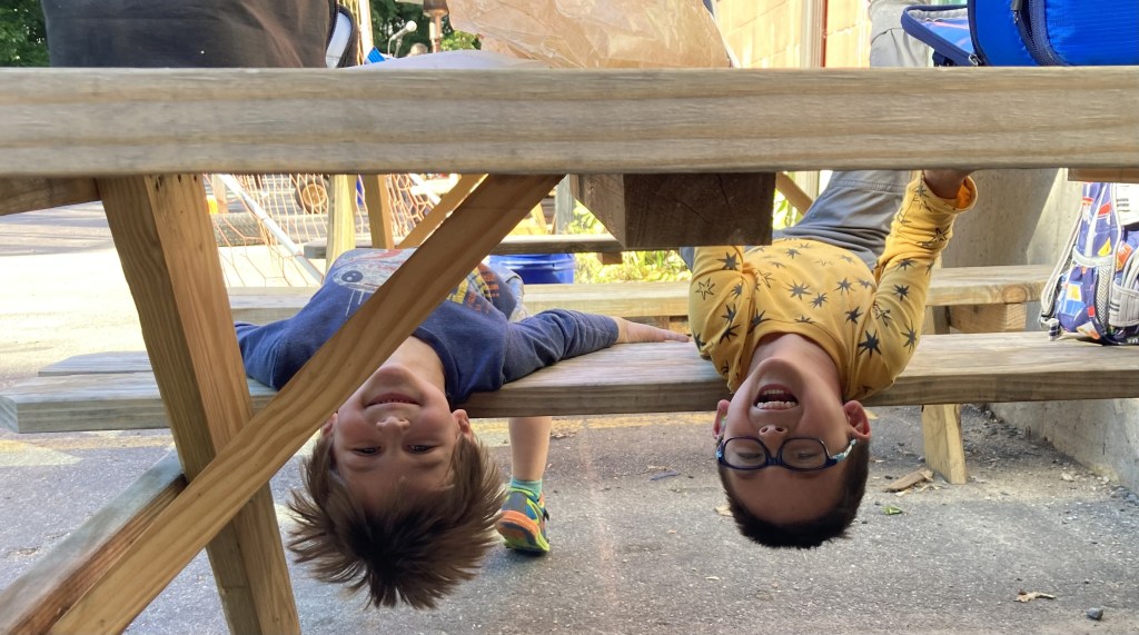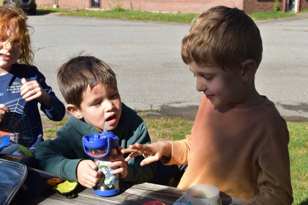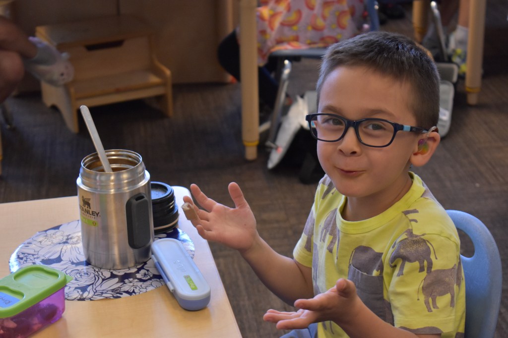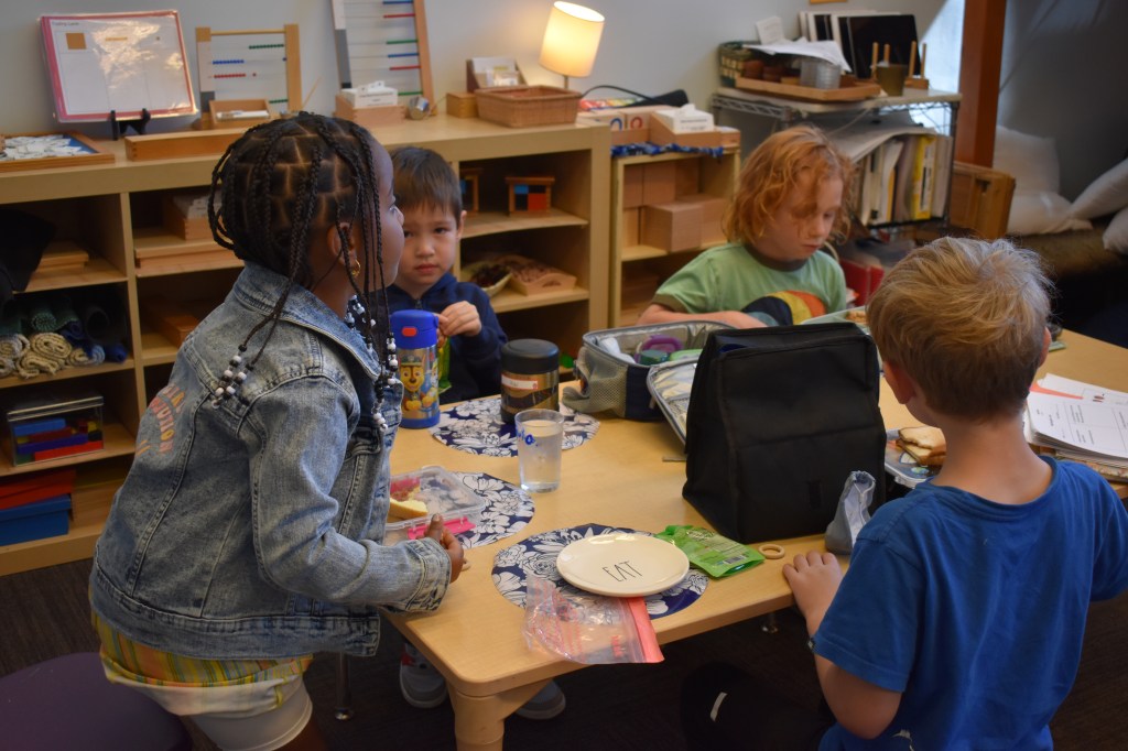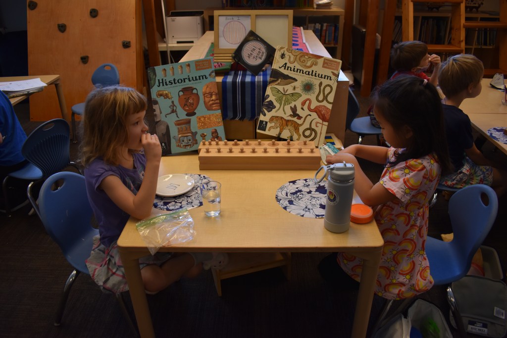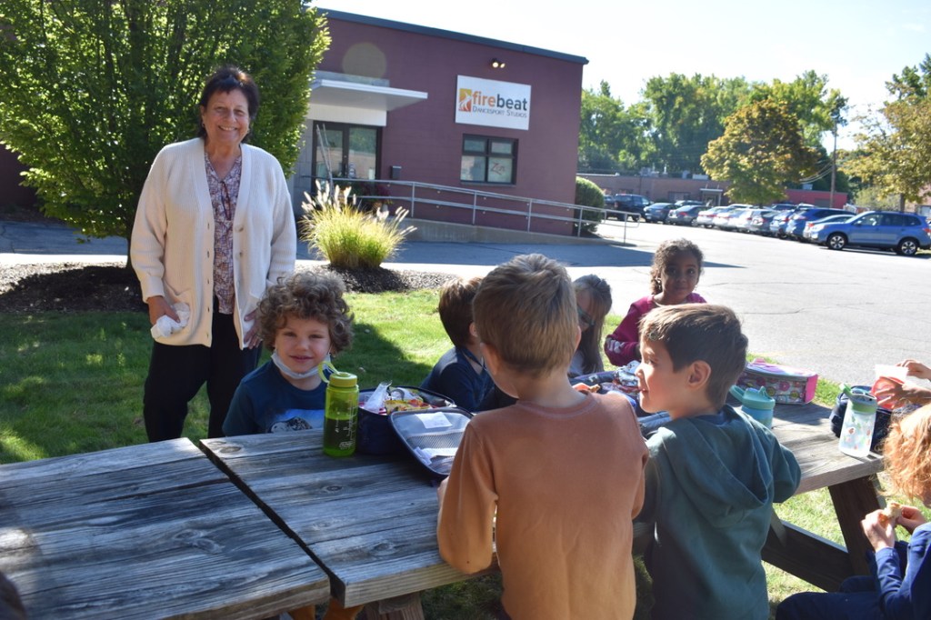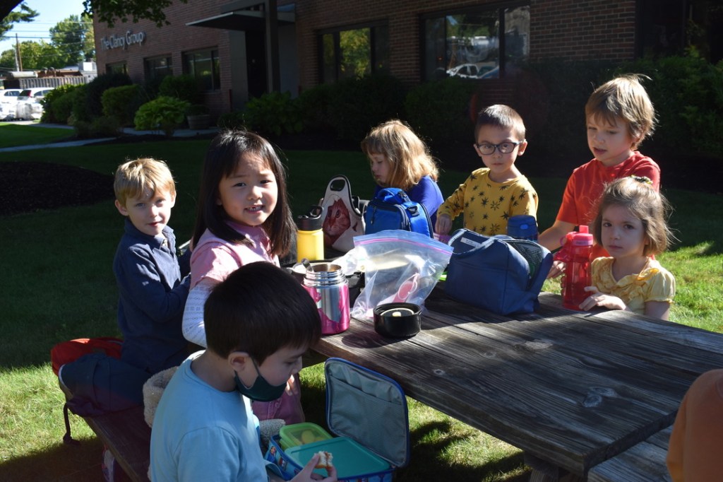 We are eating indoors this year to support healthy eating habits as well as appropriate social skills. Using utensils, access to hand washing, and appropriate seating supports healthy habits. The conversations have been delightful and provided important connections at the beginning of the school year and sprouting early friendships.