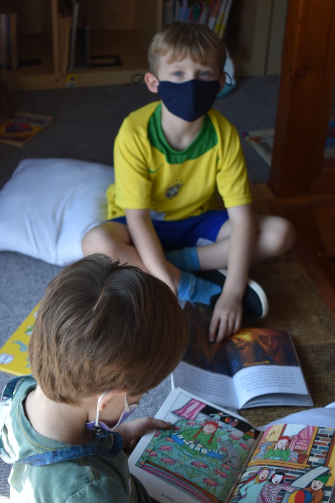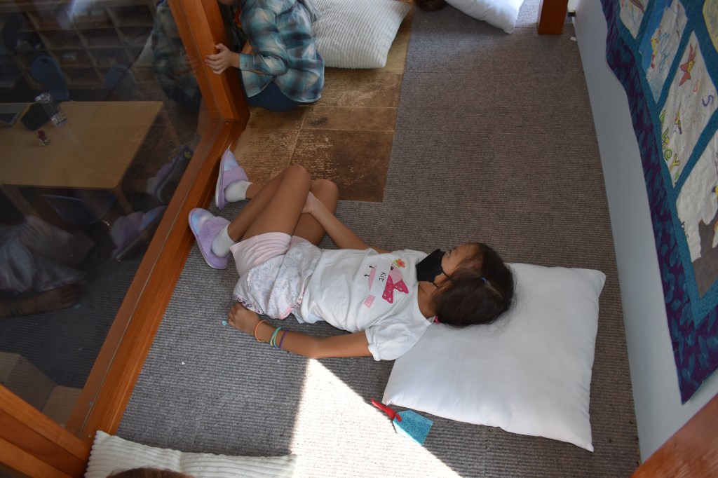 We have EXCLUSIVELY been resting the week! Finding a cozy place to sit or lie down and having a few moments of peace, quiet, and reflection has been important. This time of day will eventually become reading instruction including “Book Clubs” where small groups of children will bond over books.