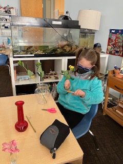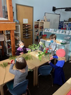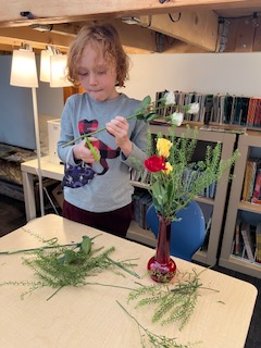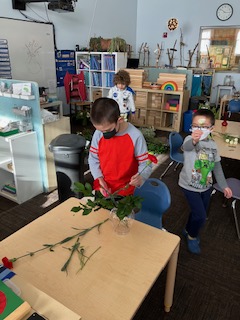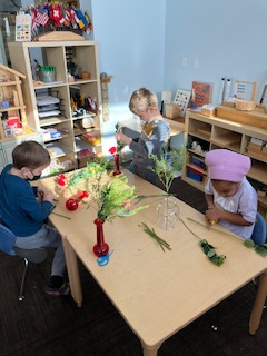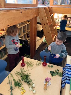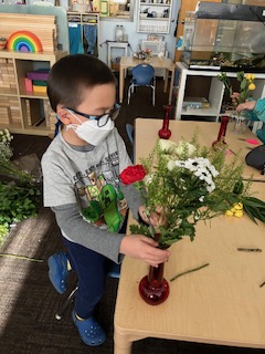 Olivia and her Mum arrived one Monday morning, with about ten dozen bunches of flowers and a selection of vases which lead to a wonderful, impromptu flower arranging class. Ms. Jen showed the children three steps to creating their floral arrangements and explained the use of “fillers, thrillers, and spillers!” A student noted that there were also some “Droopers!” They had to use math skills such as measuring the stems to make sure they would fit in the vase, and fine-motor skills including using special scissors to trim the stems. It was such a lovely way to spend our morning and we hope you all got to enjoy your beautiful flowers. A huge thanks to Olivia’s aunt, who is a florist, for providing such a generous amount of flowers.