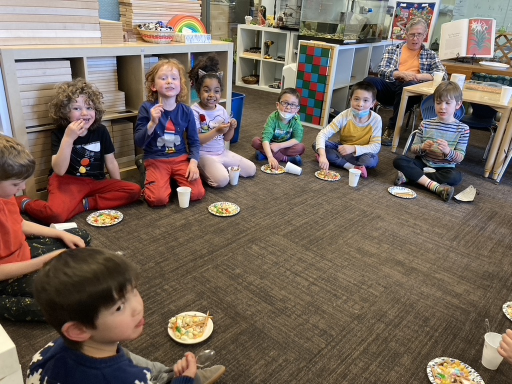 Students enjoy taking over the roles and responsibilities that once belonged to their teachers such as leading the game Pica Firma Nada! Everyone wants a turn to call on their classmate’s quiet hands to guess the number. Students are putting out name cards for snack and lunch, shaking the rattle to announce a transition, and give instructions!
