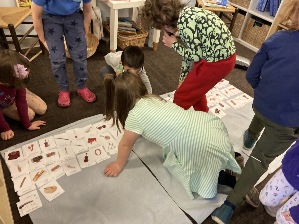 Last week the students in LE decided that they were going to tackle the Instrument Vocabulary 3-Part Cards. The cards have pictures and the names of over 100 instruments from around the world and the students wanted to organize them all BEFORE meeting began! This is the time of year where we see the students working so seamlessly together and it is a joy to behold!