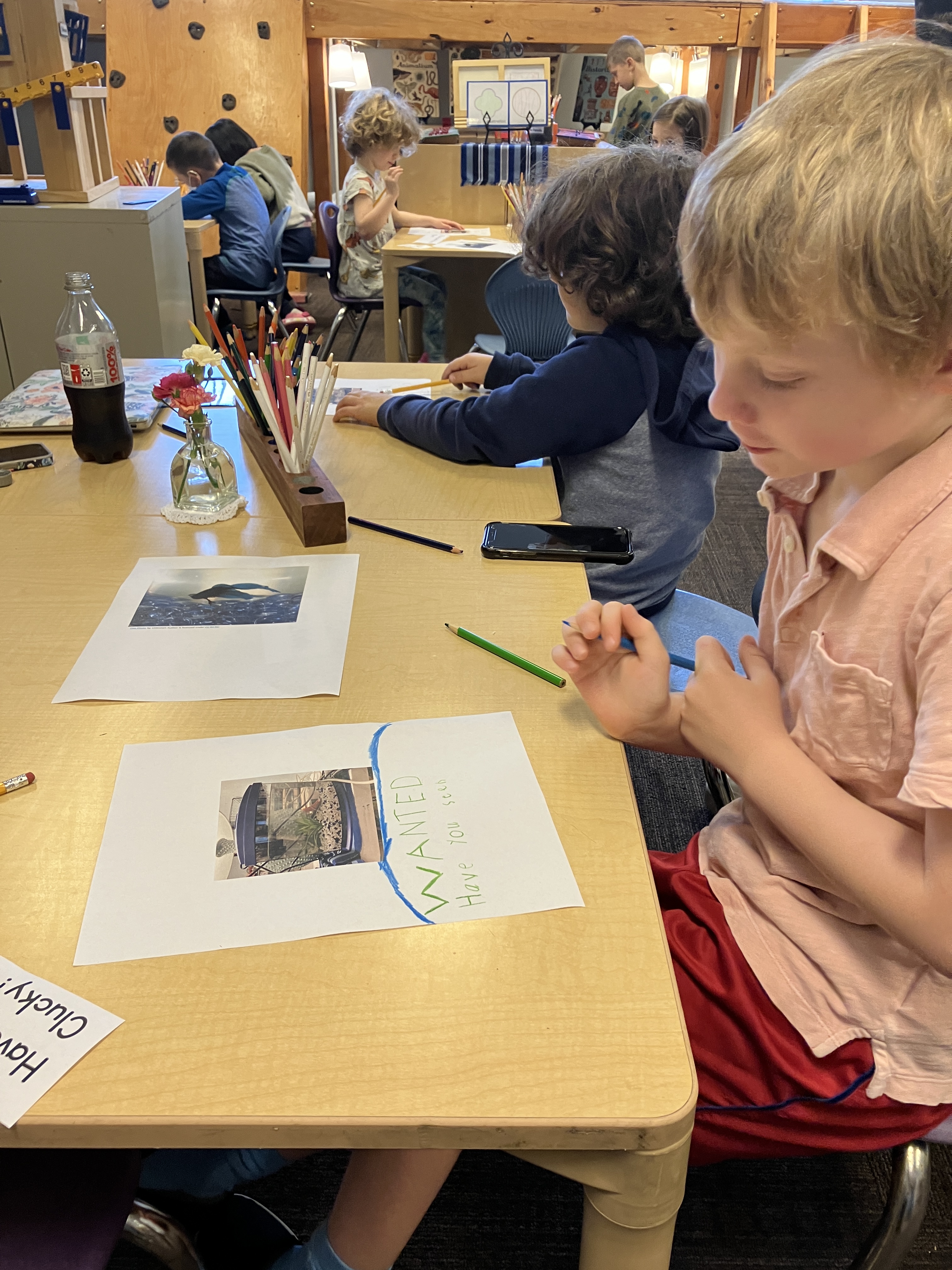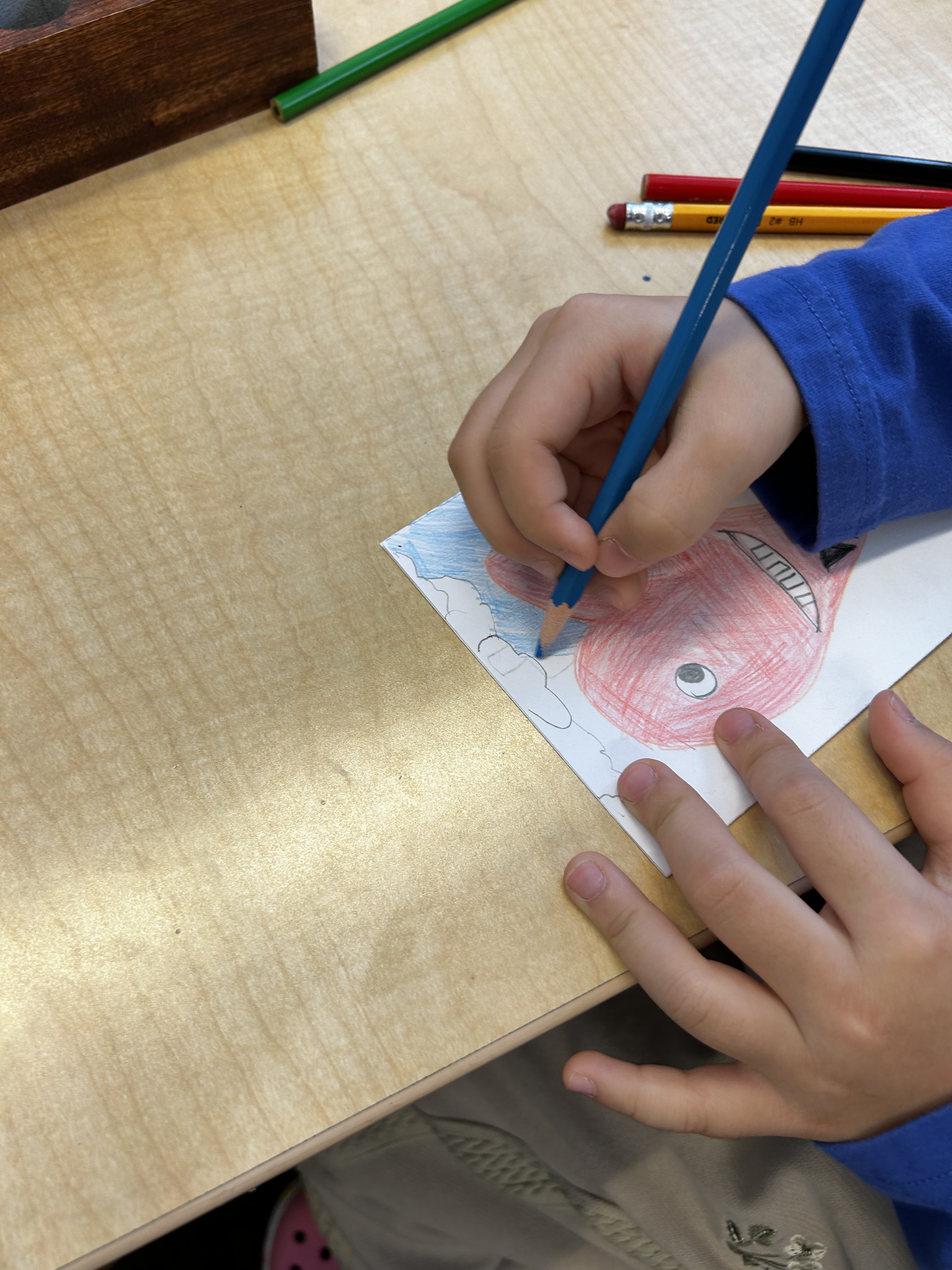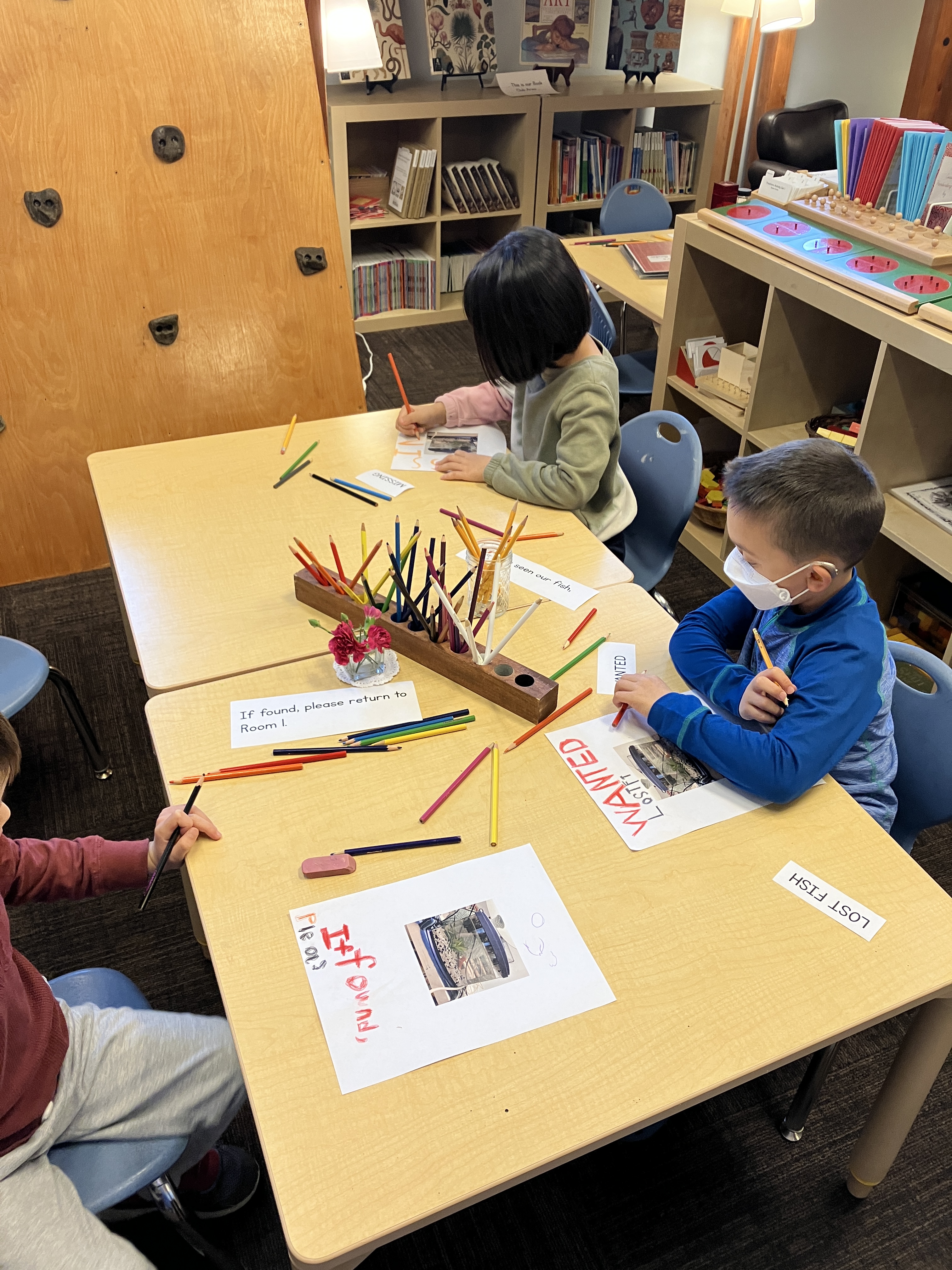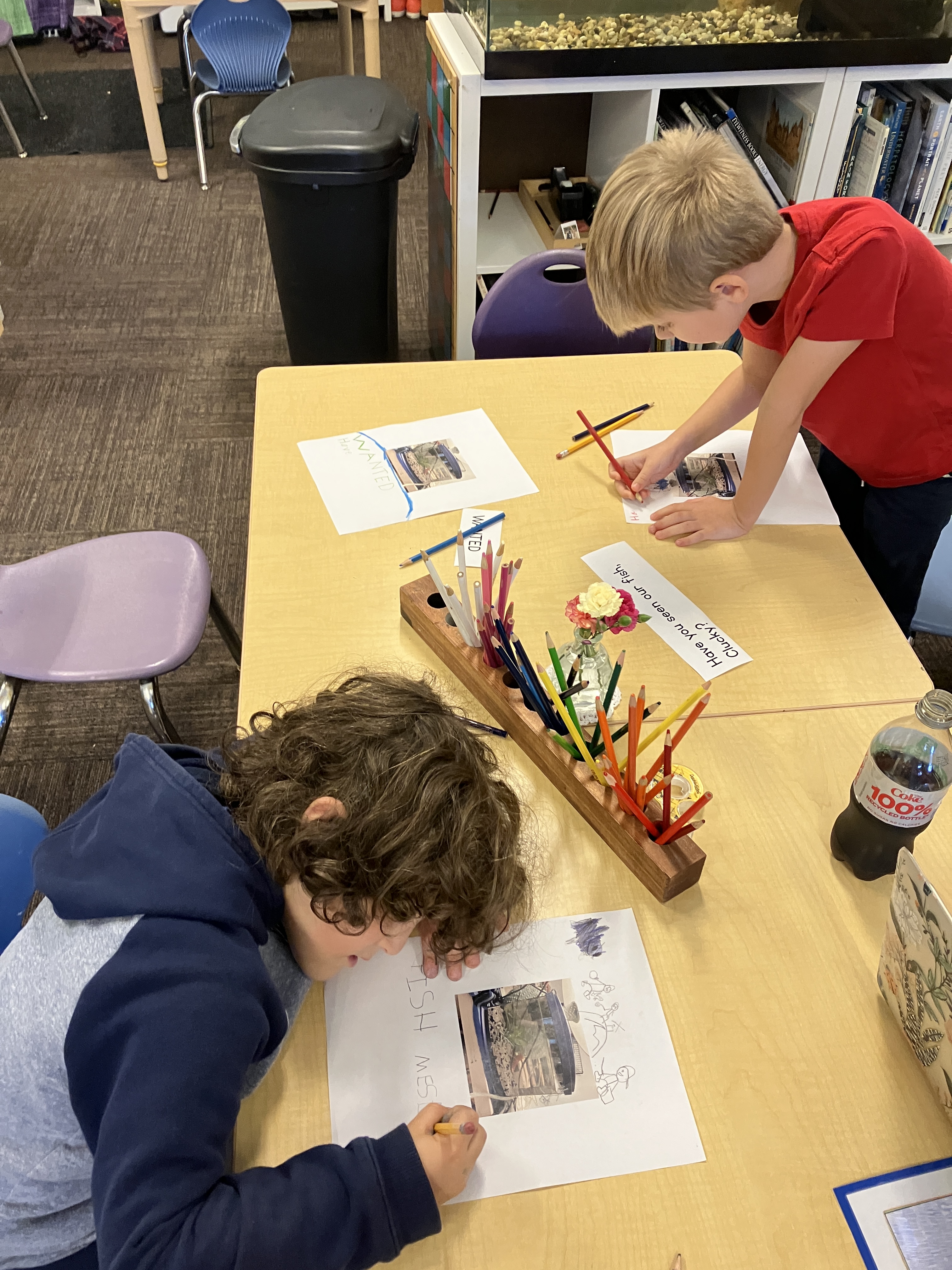 There has been a lot of discussion (still) over what happened to Clucky, our fish. As a writing prompt, students used words and sentences like “Lost”, “Missing”, “Have you see our fish?” and made a poster to hang around the school, in the hope that someone might have some information that leads to solving the mystery. A second prompt was for students to write a get well soon note to Ms. Lisa after gum surgery. When she came back to school on Thursday morning, there was a delightful pile of very thoughtful messages and beautiful illustrations with lots of hearts (her favorite thing), rainbows, waves, and vikings. She was so happy!
