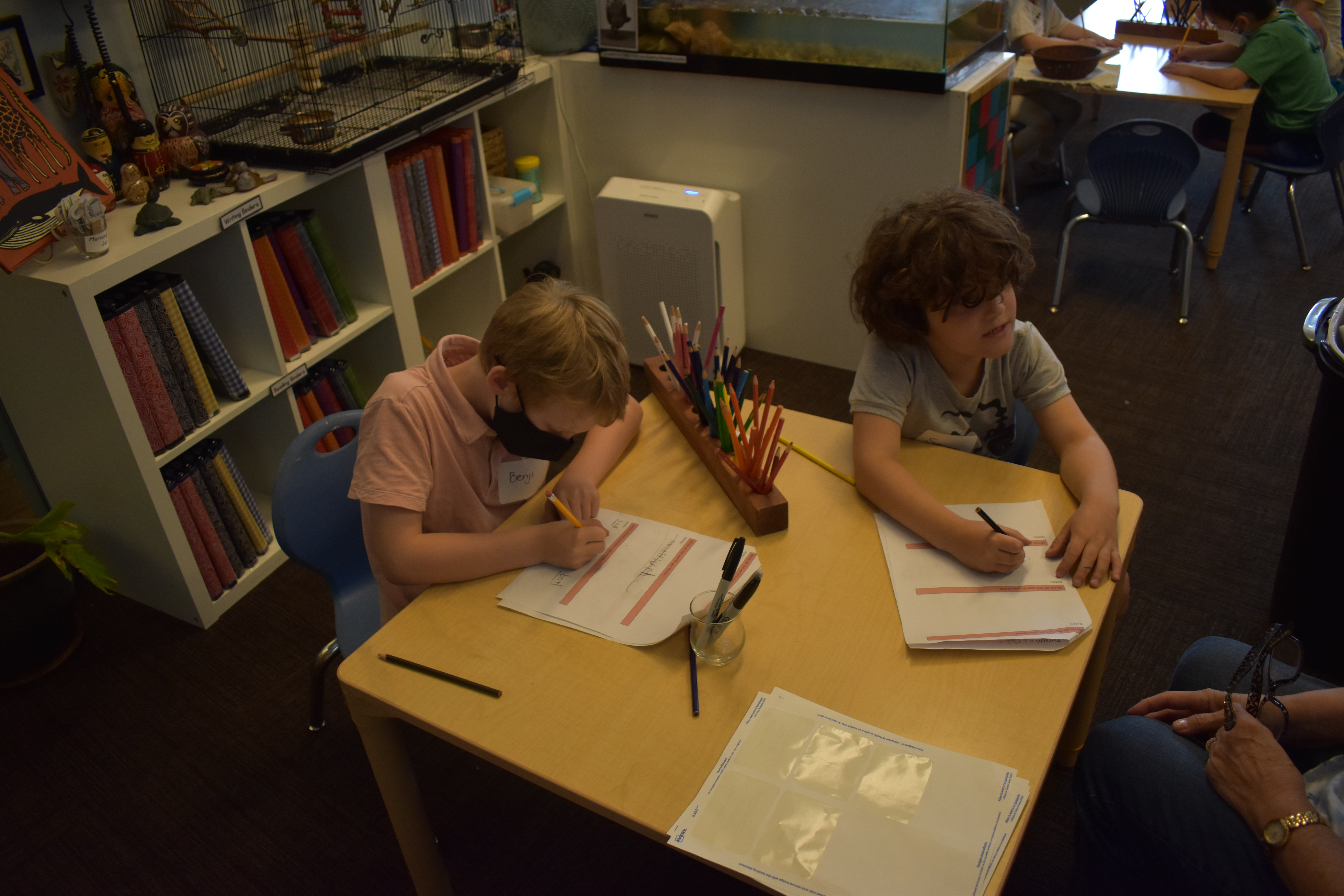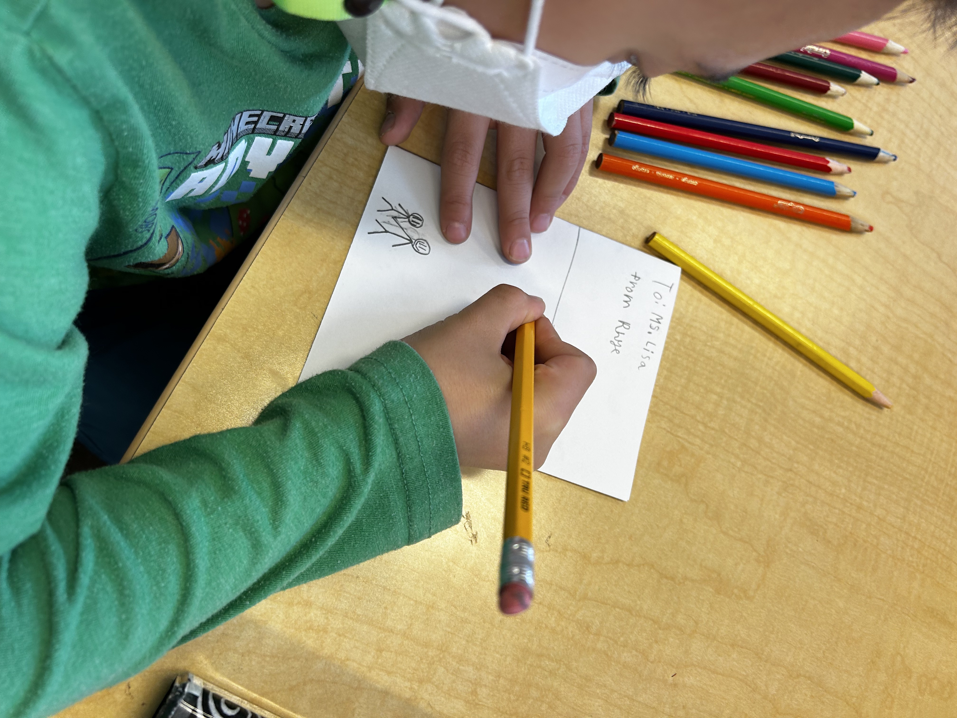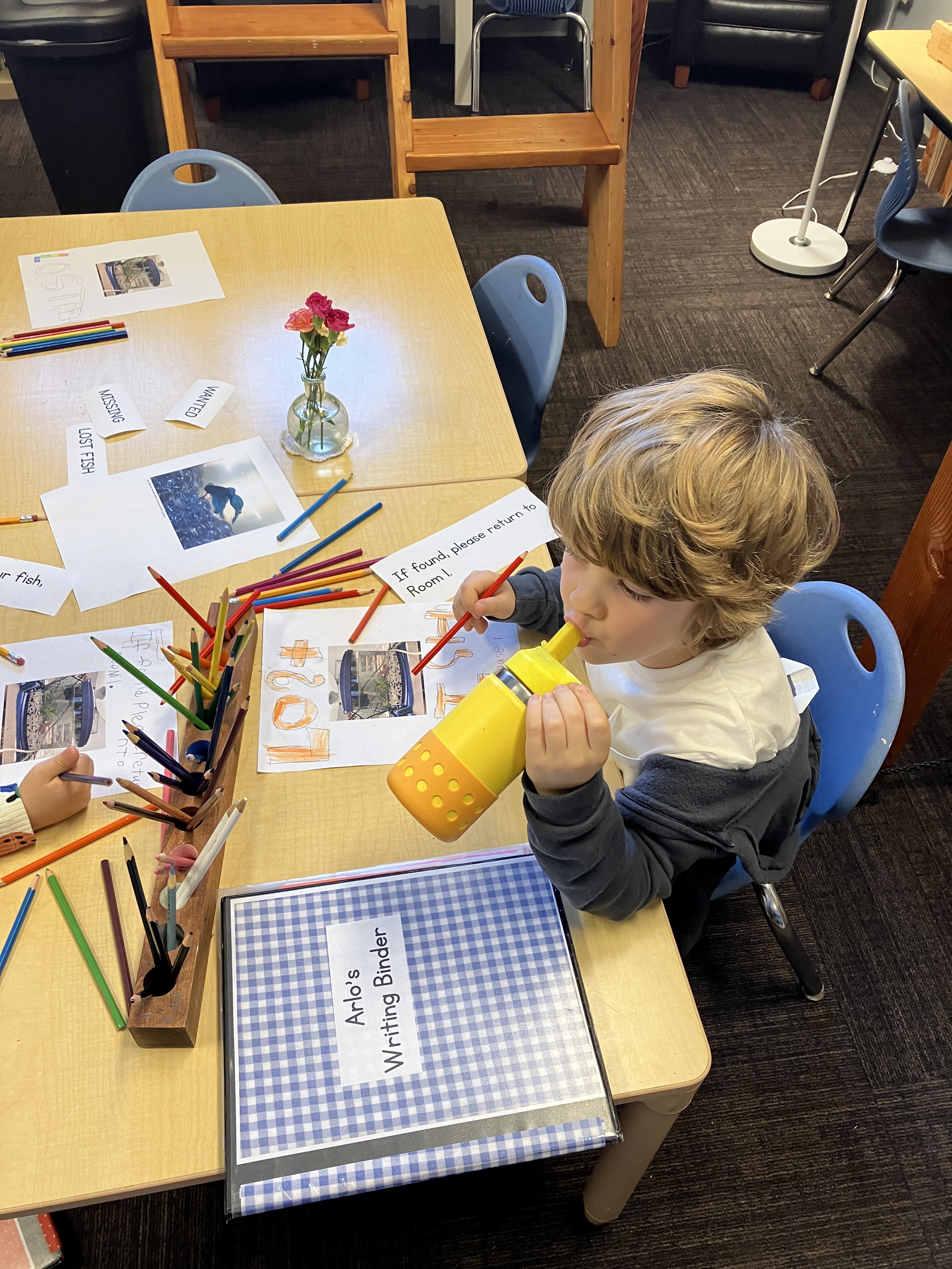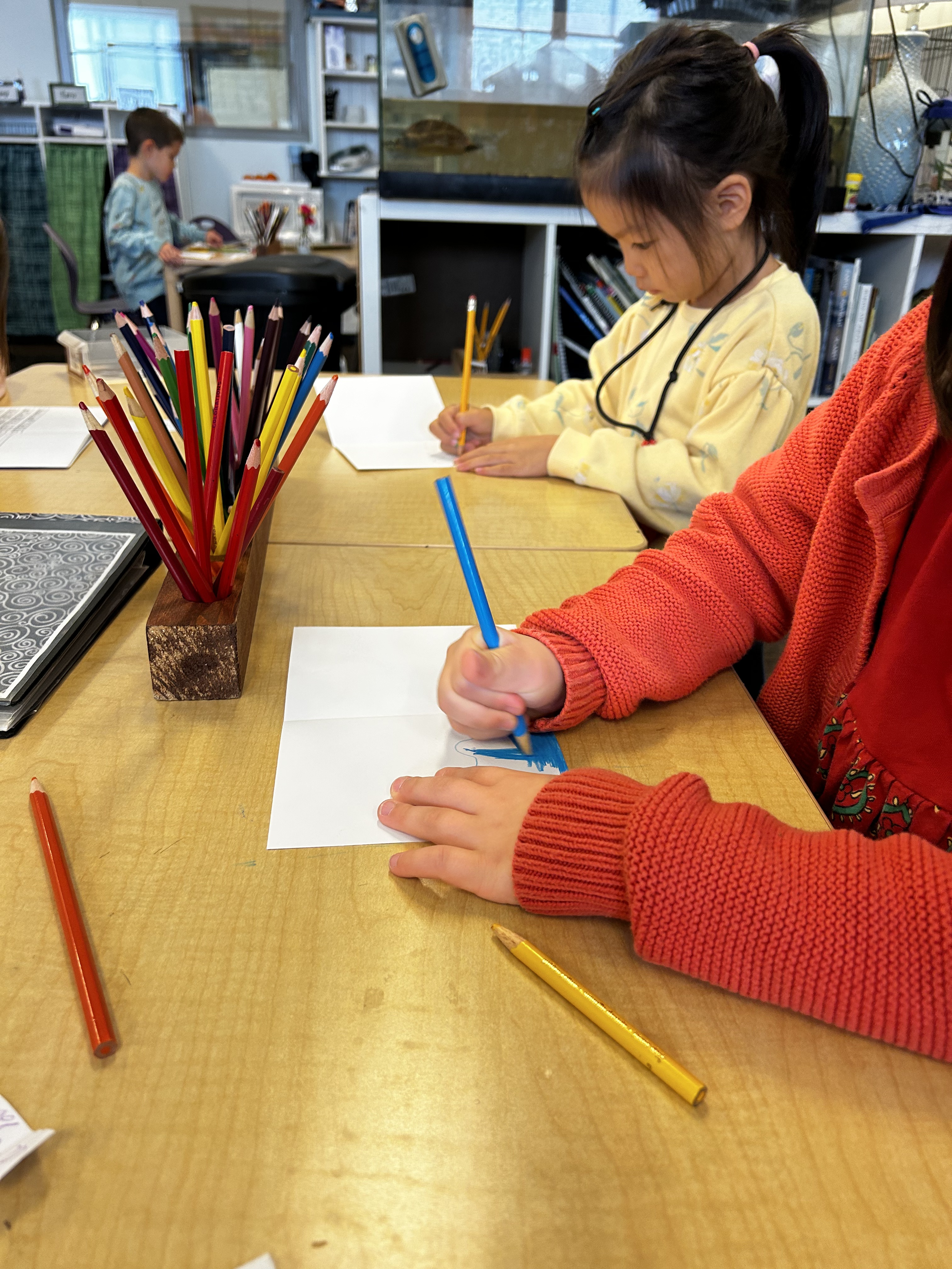 There has been a lot of discussion (still) over what happened to Clucky, our fish. As a writing prompt, students used words and sentences like “Lost”, “Missing”, “Have you see our fish?” and made a poster to hang around the school, in the hope that someone might have some information that leads to solving the mystery. A second prompt was for students to write a get well soon note to Ms. Lisa after gum surgery. When she came back to school on Thursday morning, there was a delightful pile of very thoughtful messages and beautiful illustrations with lots of hearts (her favorite thing), rainbows, waves, and vikings. She was so happy!